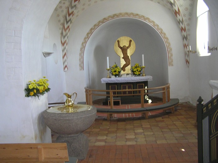 Der har været indbrud i Skivholme kirke - sandsynligvis lørdag. Tyvene har stjålet dåbsfadet og kanden. De har også gennemrodet det hele, væltet vaserne osv. Det er ufatteligt, hvad nogle mennesker kan finde på.