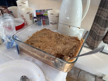 Enkelte trak tilbage ind i kirken, imens andre stod udenfor i solen, imens vi nød en æble cookie og gammeldags æblekage.