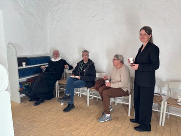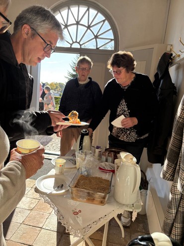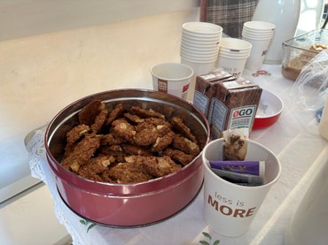 Det var Inger Lise og Margit der hver i sær havde bagt kager til dagens kirkekaffe. Vejret var smukt og stemningen var i top, da vi efter dagens gudstjeneste samles i våbenhuset for at nyde en kop kaffe og noget lækkert kage.