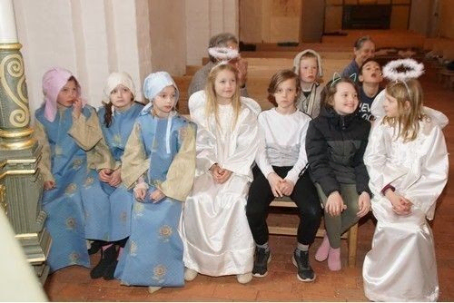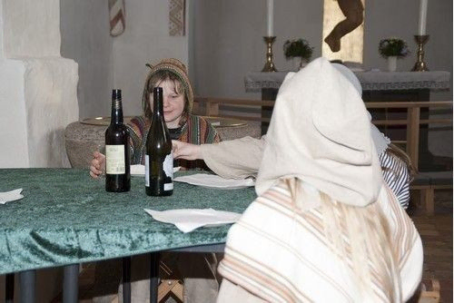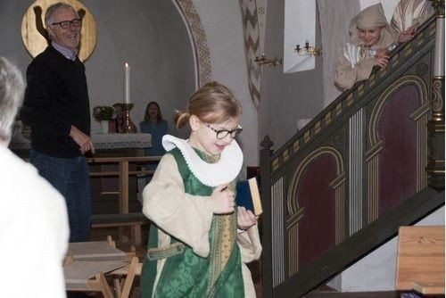 Det var elever fra Herskind Skole som onsdag den 10. april 2019 øvede til søndagens påskeoptog. Minikonfirmanderne samledes i Sognegården til en salme og nogle instruktioner til forløbet i kirken. Der var hjælpere til at finde tøj tl de enkelte personer i påskespillet.